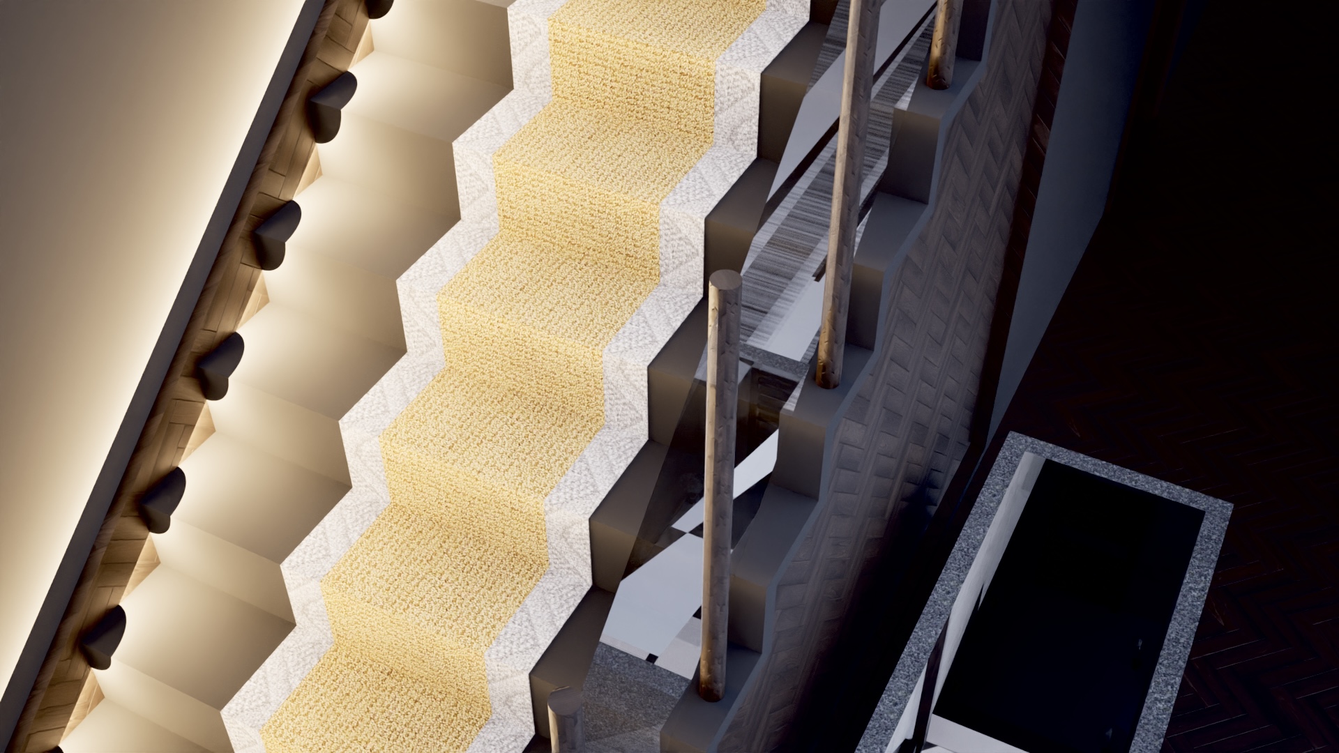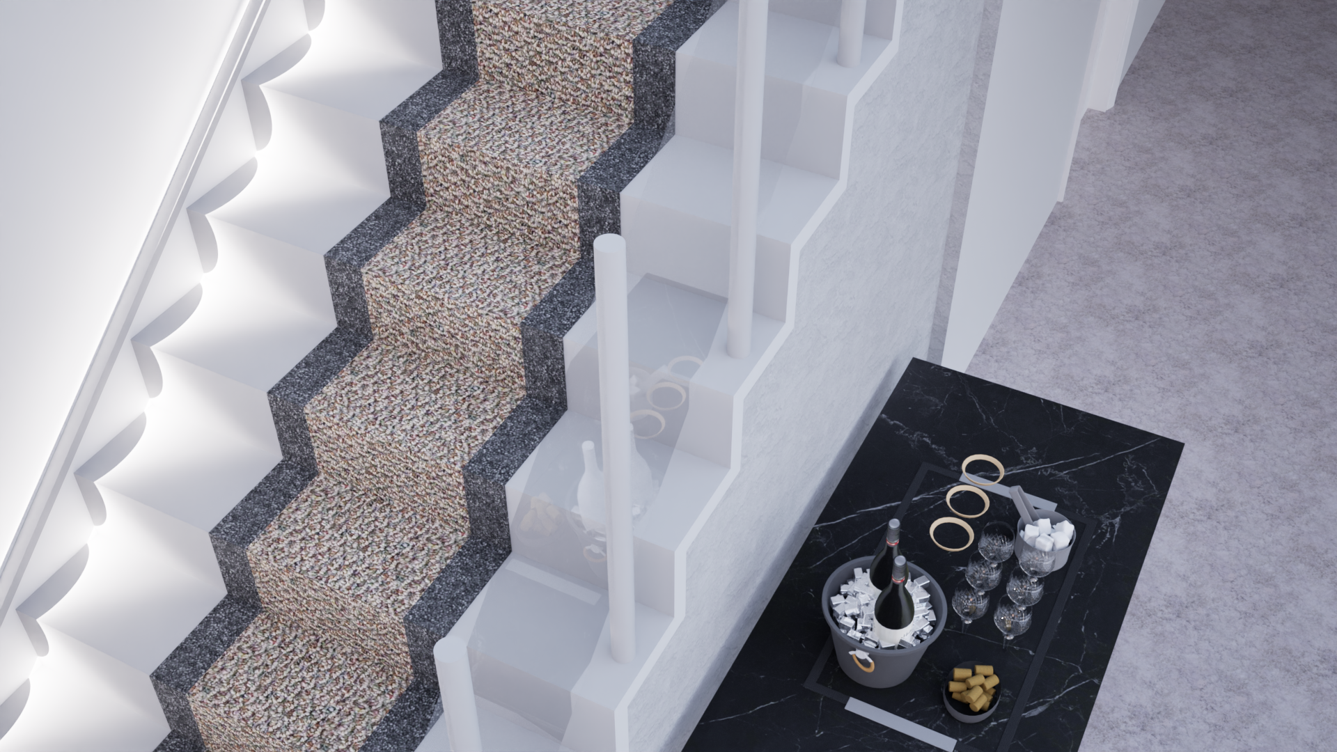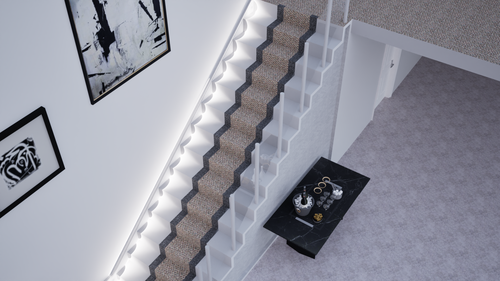 White Horizon offers a serene and luxurious atmosphere, blending bright marble and crisp whites to create a clean, spacious, and heavenly staircase design.