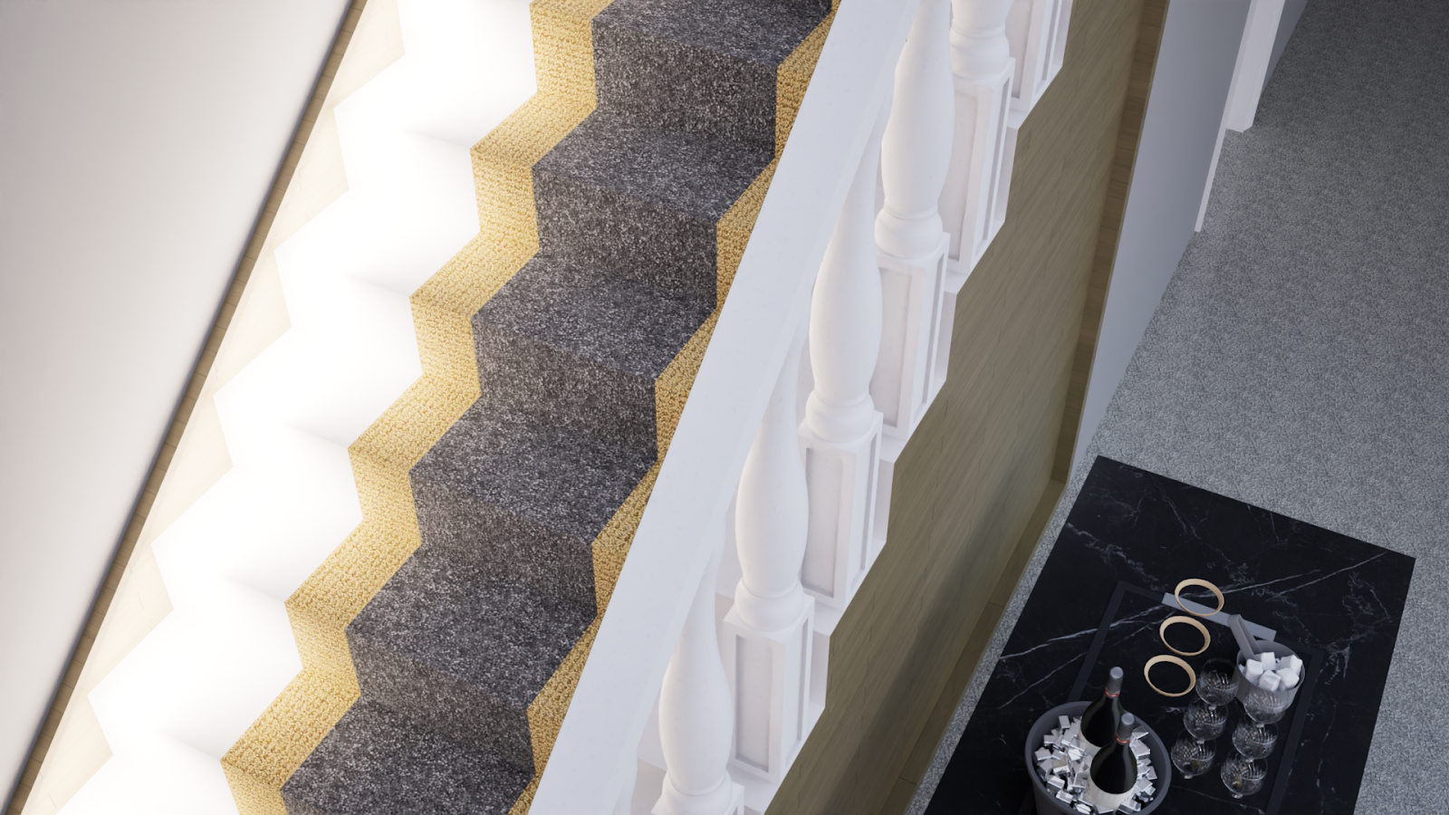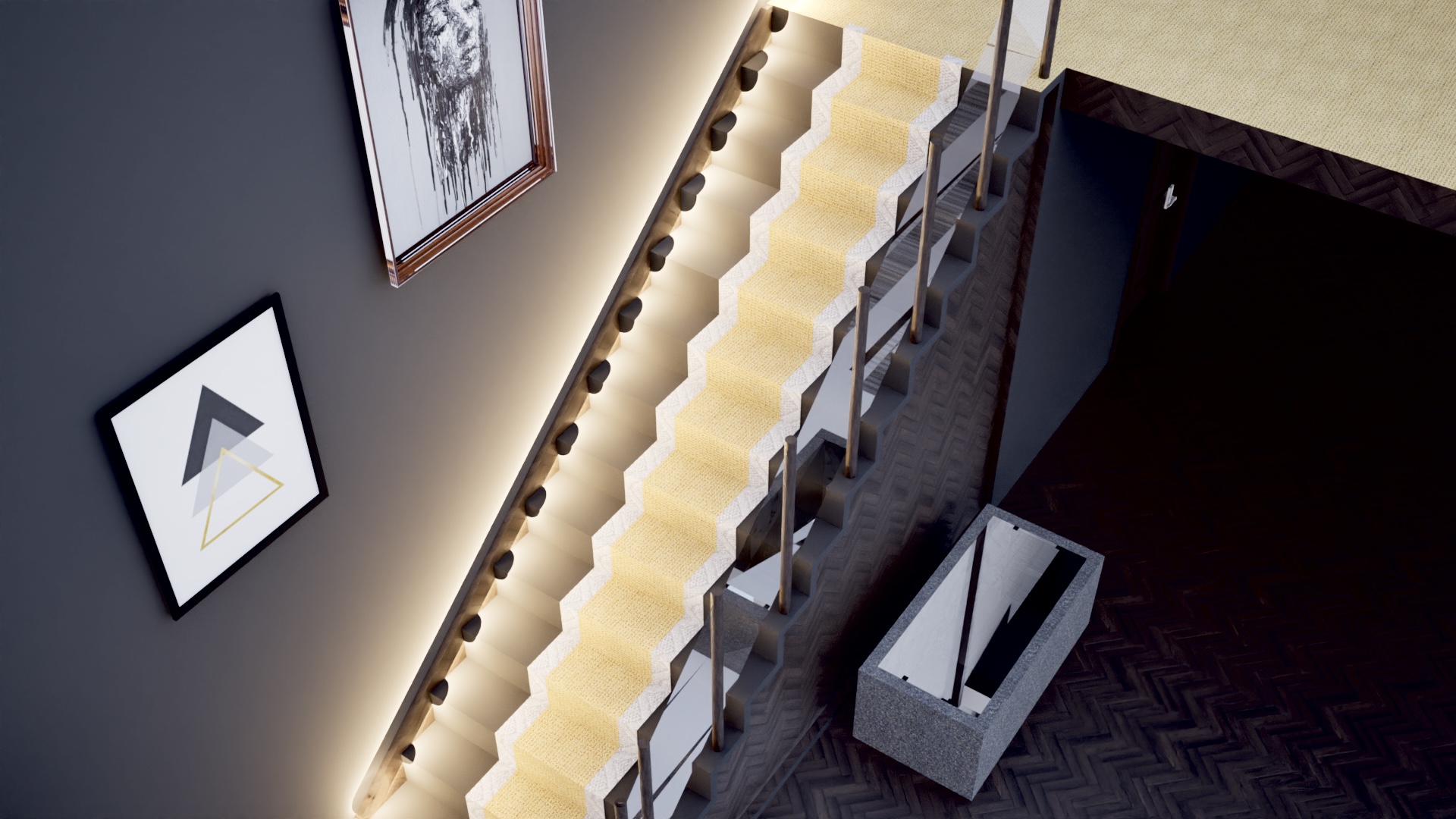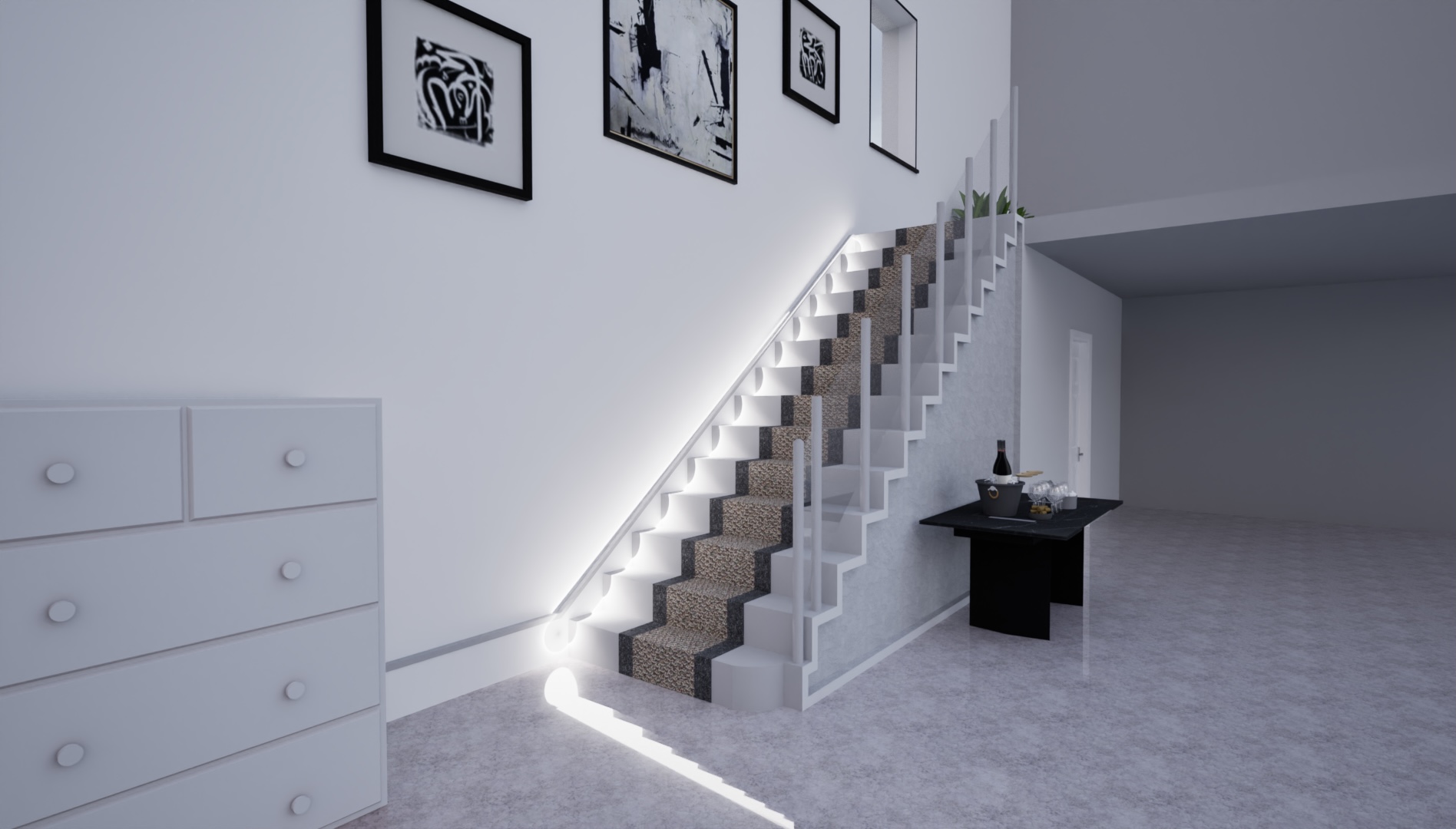 White Horizon offers a serene and luxurious atmosphere, blending bright marble and crisp whites to create a clean, spacious, and heavenly staircase design.